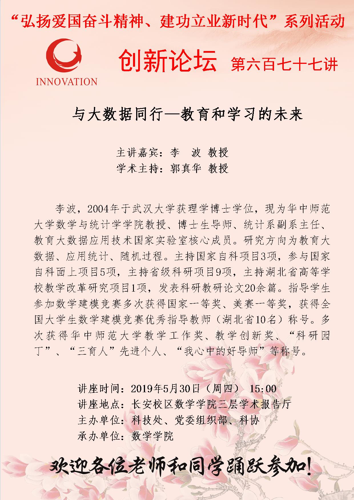 jdb电子中国官方网站创新论坛第六百七十七讲:与大数据同行——教育和学习的未来