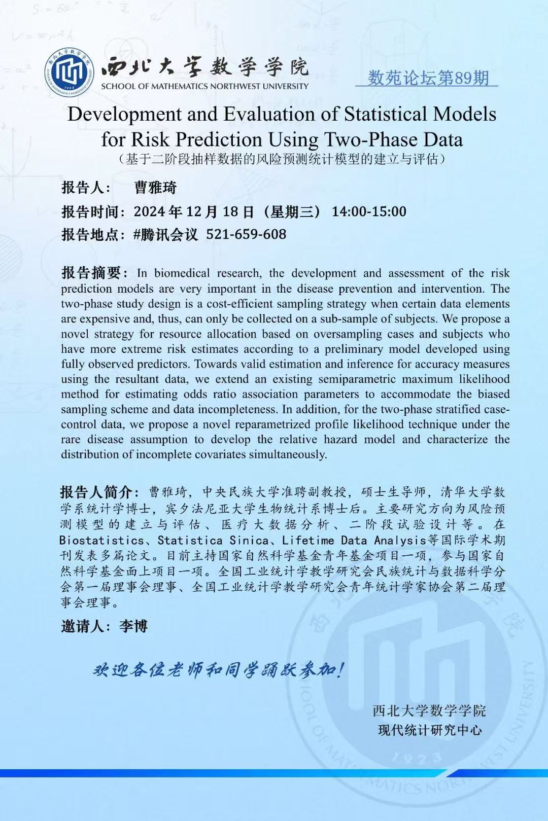 Development and Evaluation of Statistical Models for Risk Prediction Using Two-Phase Data(基于二阶段抽样数据的风险预测统计模型的建立与评估)
