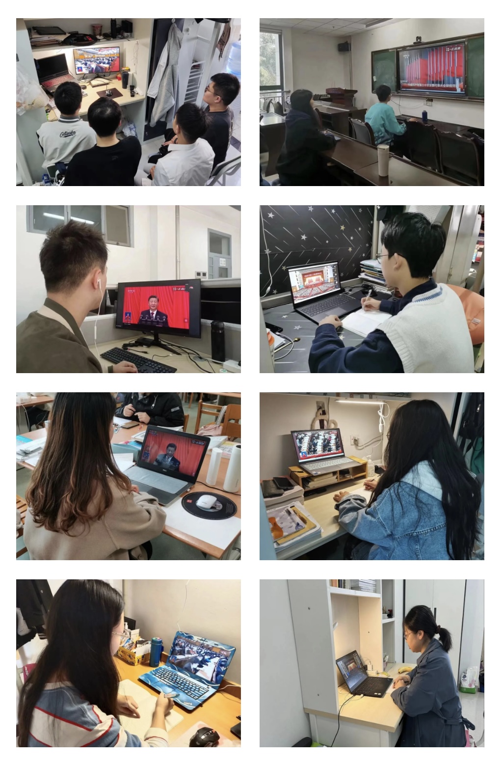 (学生在教室、图书馆、宿舍、实验室观看开幕式)