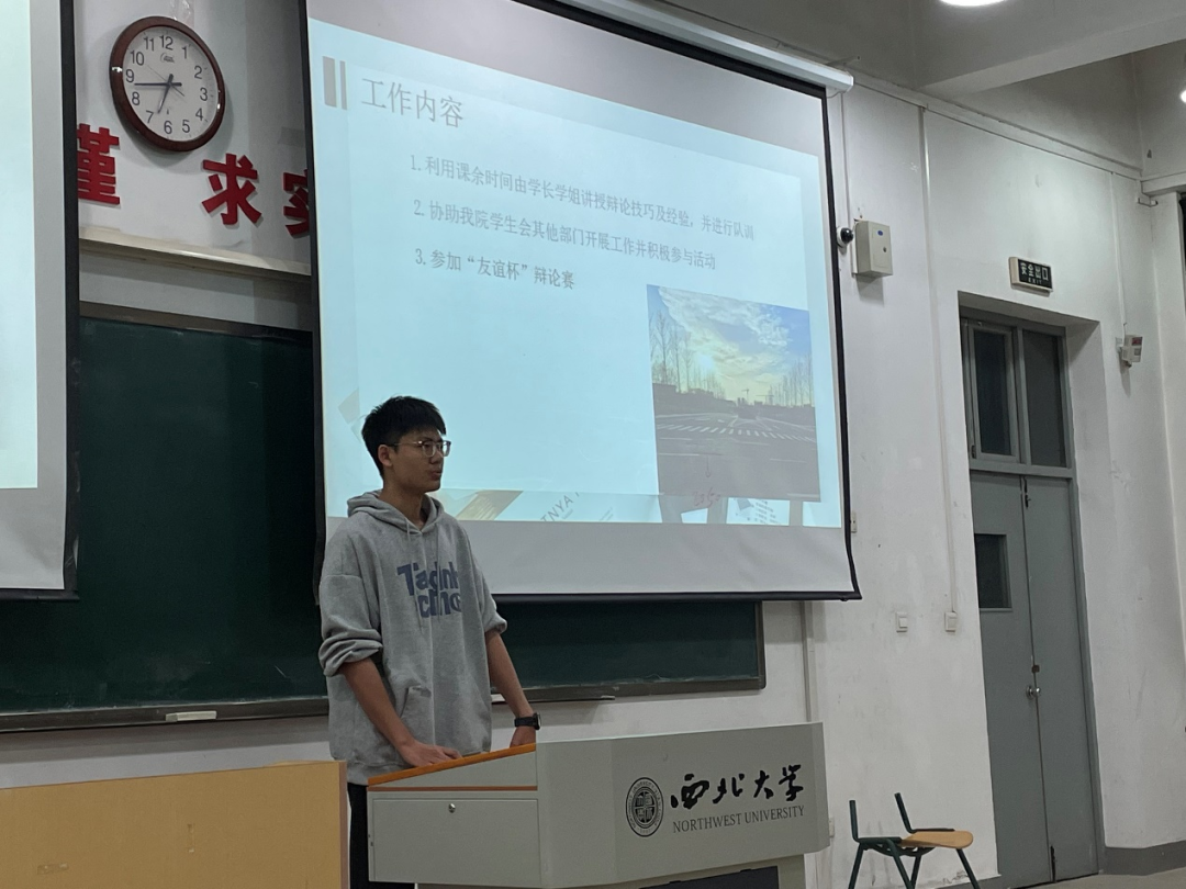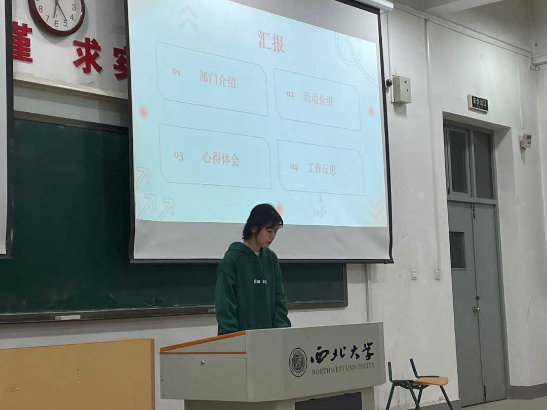 大会第二项,由各部门总结第一学期学生会工作并介绍第二学期工作计划,同时由学生会各部门工作人员为志愿者们颁发学生会工作证。