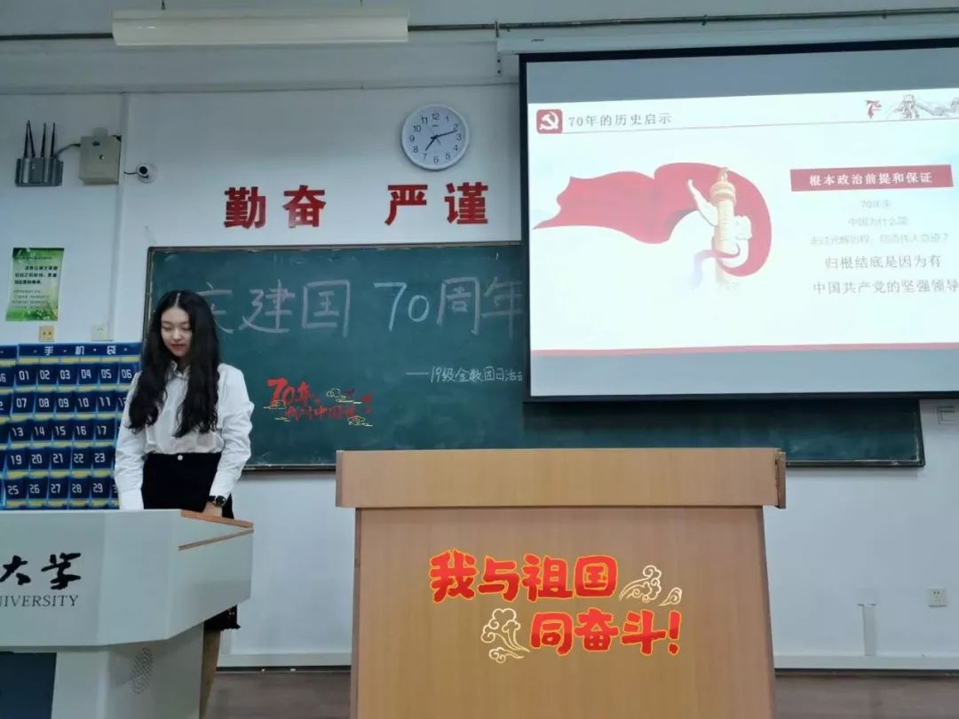 为庆祝新中国成立70周年,大力弘扬中华民族精神,鼓励青年团员勇于肩负起时代赋予重任,提高自身综合素质,在学习生活中志存高远、脚踏实地。近期,在jdb电子中国官方网站团委的统一部署下,2019级本科生各团支部开展了以“锦绣70年