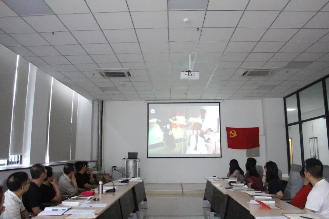 与会人员集体观看了《不忘初心、矢志不渝》和《我宣誓》两个短视频。