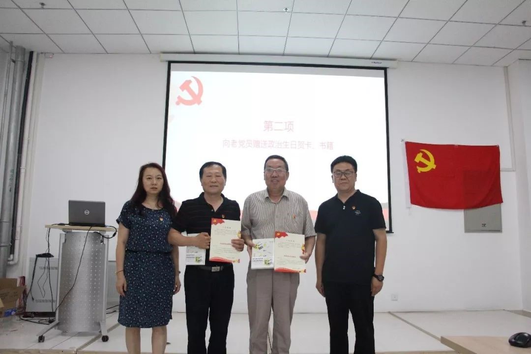 党委书记李长宏向王连堂、辛小龙两位同志赠送政治生日贺卡,党委委员、副院长张瑞向两位同志赠书。党委委员刘华宁向各党支部书记赠送政治生日贺卡,党委委员、副院长杨喆向各党支部书记赠书。