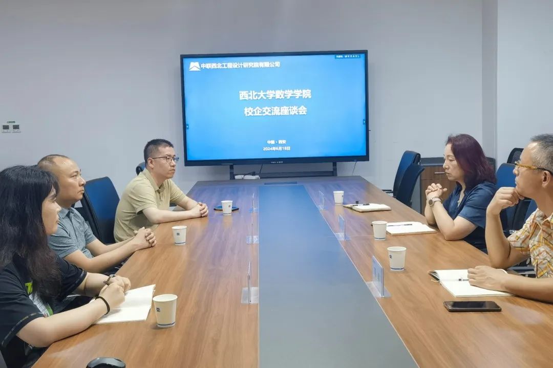 中联西北工程设计研究院有限公司,前身为机械工业部第十一设计研究院,承担了我国仪器仪表行业80%以上骨干企业的基本建设和技术改造等历史重任。围绕社会服务中心目标,公司不断创新发展,以数据科技、能源科技等技术提升建筑设计内涵,打造了多处高科技产业园区、公共服务建筑群、节能楼宇等项目。目前公司设有包括城市更新和数字技术在内的9个事业部,挂牌全国博士后科研工作站,携手国内多所高校设立学生实践基地。在座谈中,相关事业部负责人对数学人才在企业各类科技工程项目中的重要作用给予了高度肯定,深度分析了数学人才在设计行业的发展趋势。张瑞院长介绍了学院人才培养优势,双方就在校生实习实践、毕业生选聘、企业数字技术发展的支持合作等方面进行了深入交流。